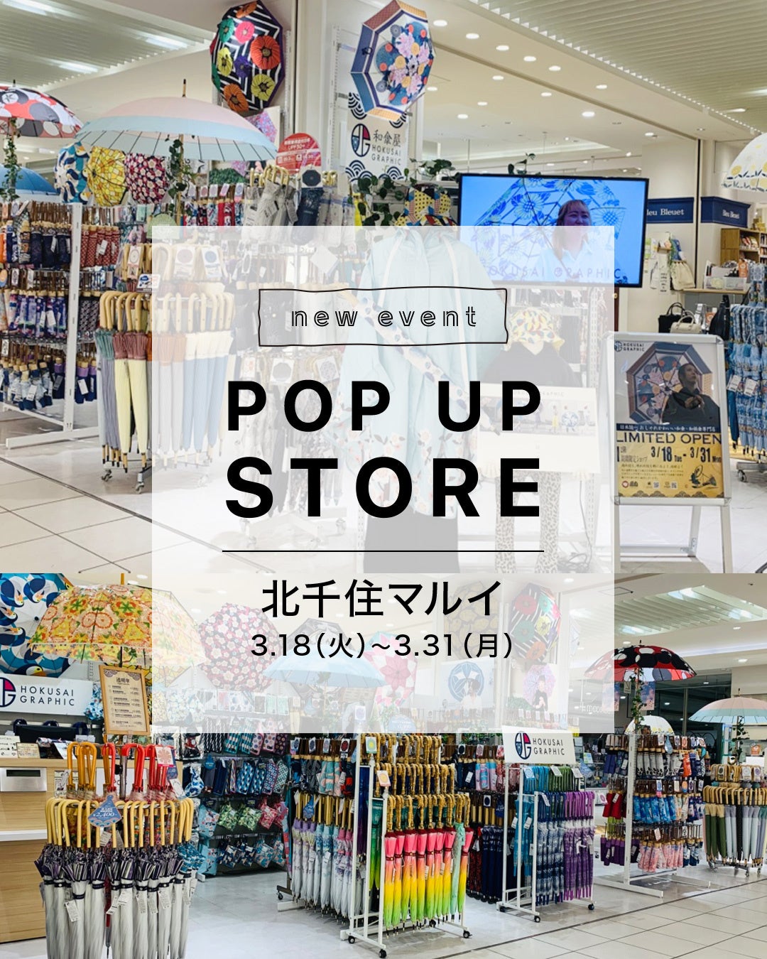 2025年3月27日『日本のカルチャーを世界へ』というビジョンのもと、かんざしや箸、和傘等の和小物ブランドとサウナ・スパグッズ専門店を全国で複数展開する株式会社和心(東京都渋谷区、代表取締役社長:森 智宏、東証グロース:9271)は、3月18日(火)から3月31日(月)まで、北千住マルイにて和柄傘ブランド『北斎グラフィック』のポップアップストアをオープンいたします。