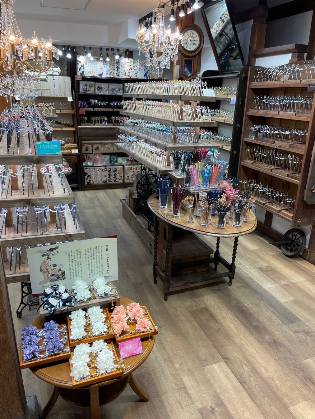 一点一点趣向を凝らした手作りのかんざしは、簡単に挿すだけで印象的なヘアスタイルを完成させることができ、日常使いから観光時の装いのアクセントまで幅広く活用いただけます。