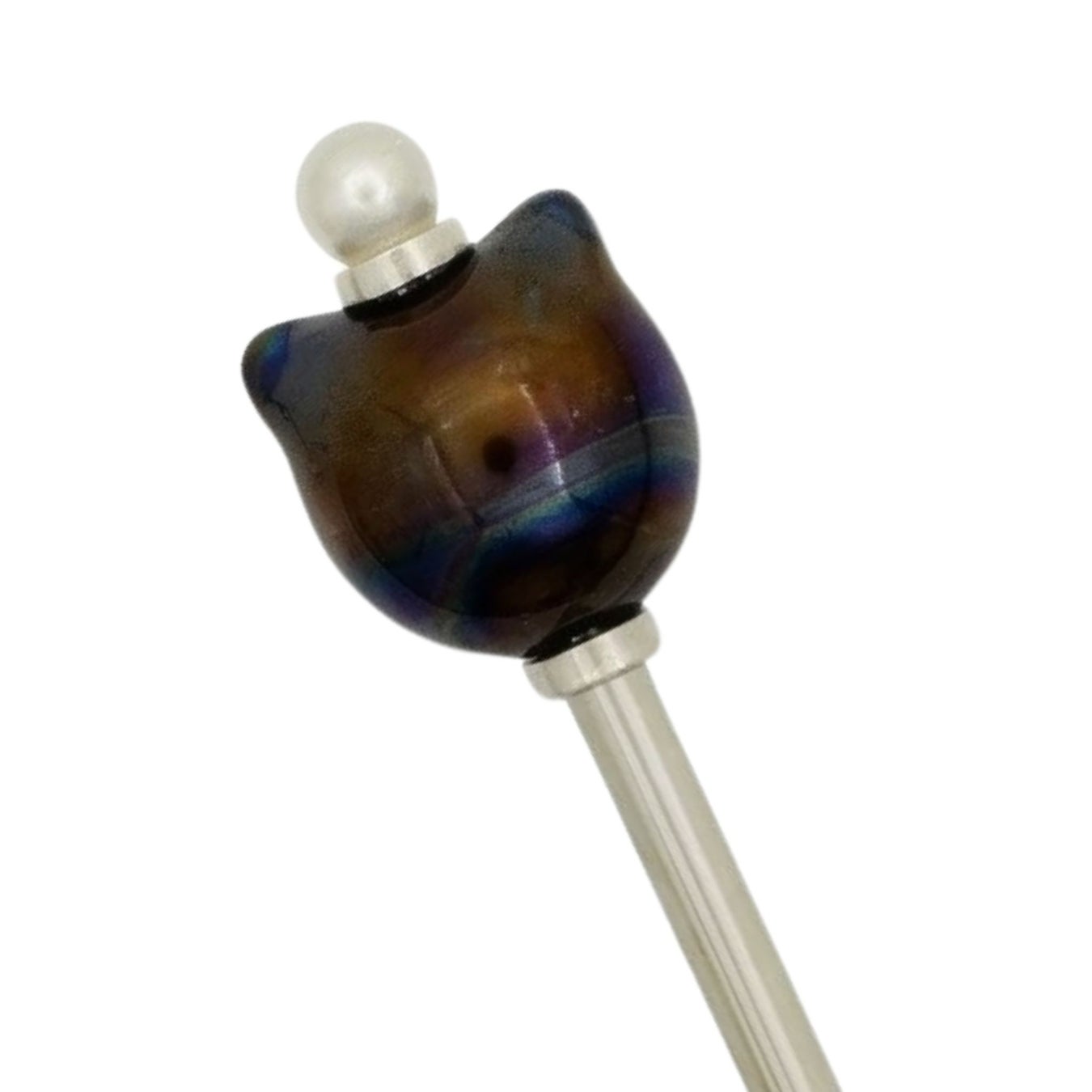 ころんと丸みを帯びた猫のシルエットが愛らしい「猫型陶器玉簪」に、待望の新色が仲間入り。