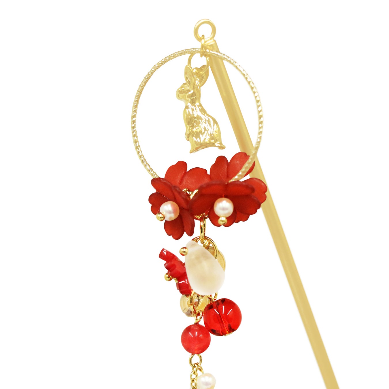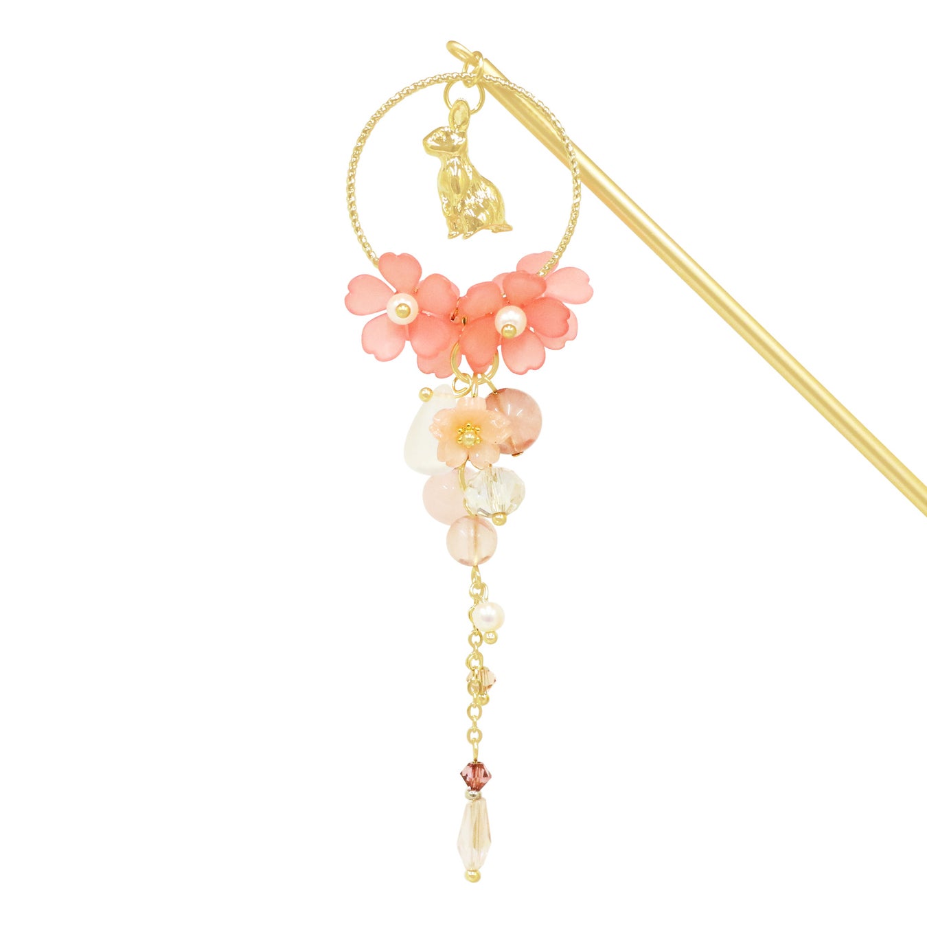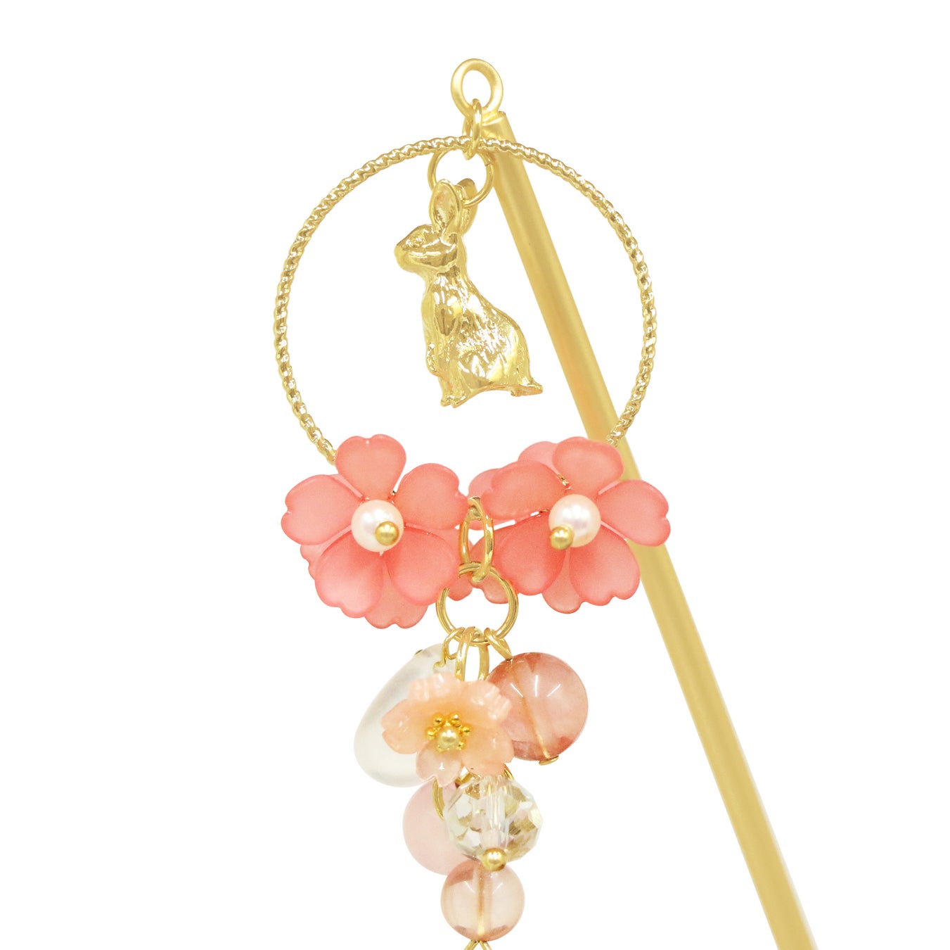 『日本のカルチャーを世界へ』というビジョンのもと、簪(かんざし)や和傘・和柄傘、箸等の和小物と、サウナ・スパグッズ専門店を全国で複数展開する株式会社和心(東京都渋谷区、代表取締役社長:森 智宏、東証グロース:9271)は、4月10日(金)より、自社で運営する『かんざし屋wargo』店舗及びECサイト「The Ichi(座市)」にて、新作「花月兎一本簪」の販売を開始します。